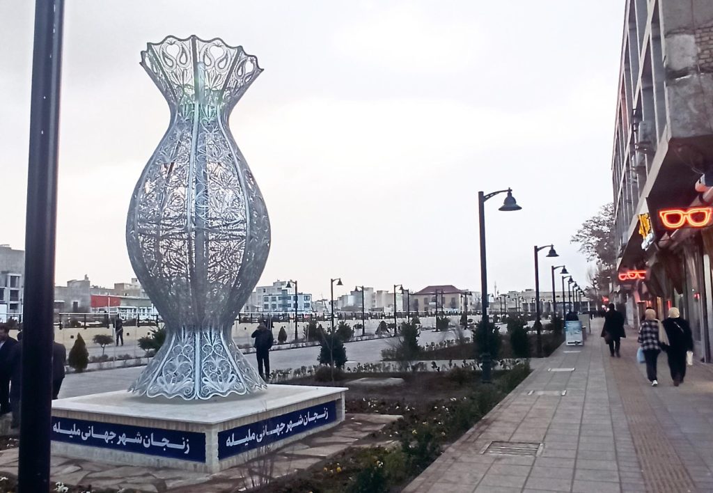 آوای میهن نیوز- در آستانه عید نوروز و ماه مبارک رمضان بزرگترین المان گلدان ملیله جهان شامگاه سه شنبه در سبزه میدان شهر زنجان رونمایی شد تا از این پس مبین هنری و جهانی زنجان به عنوان استان و شهر دست آفرینه های هنری ملیله باشد.